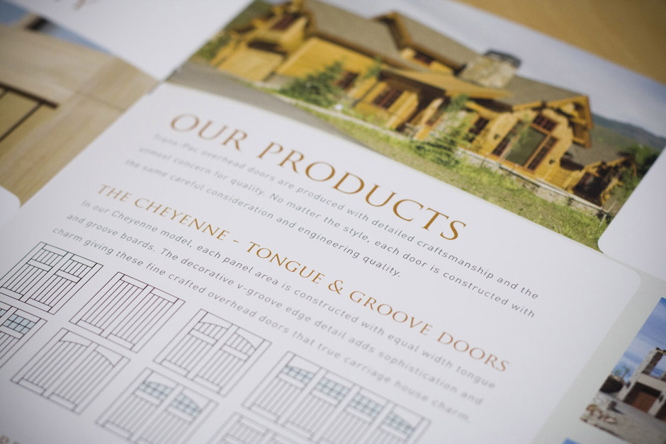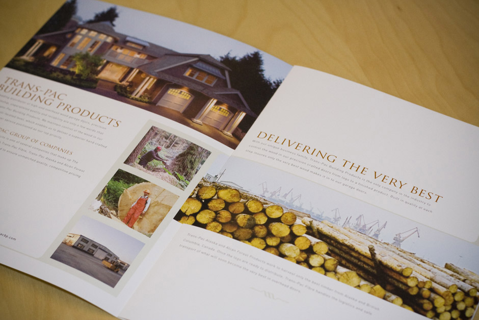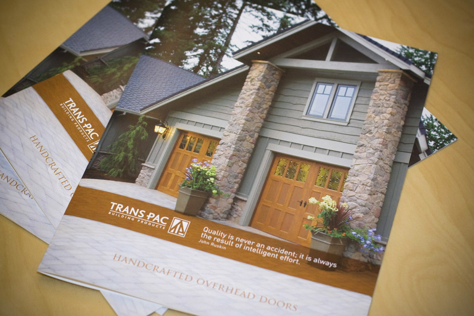 Through our partnership with Synergema, we worked with Trans-Pac Building Products to create a promotional brochure showcasing their products. Trans-Pac is an amazing brand – they own their own forests, manage the logging process, mill their own timber and handcraft a garage door to your specifications.